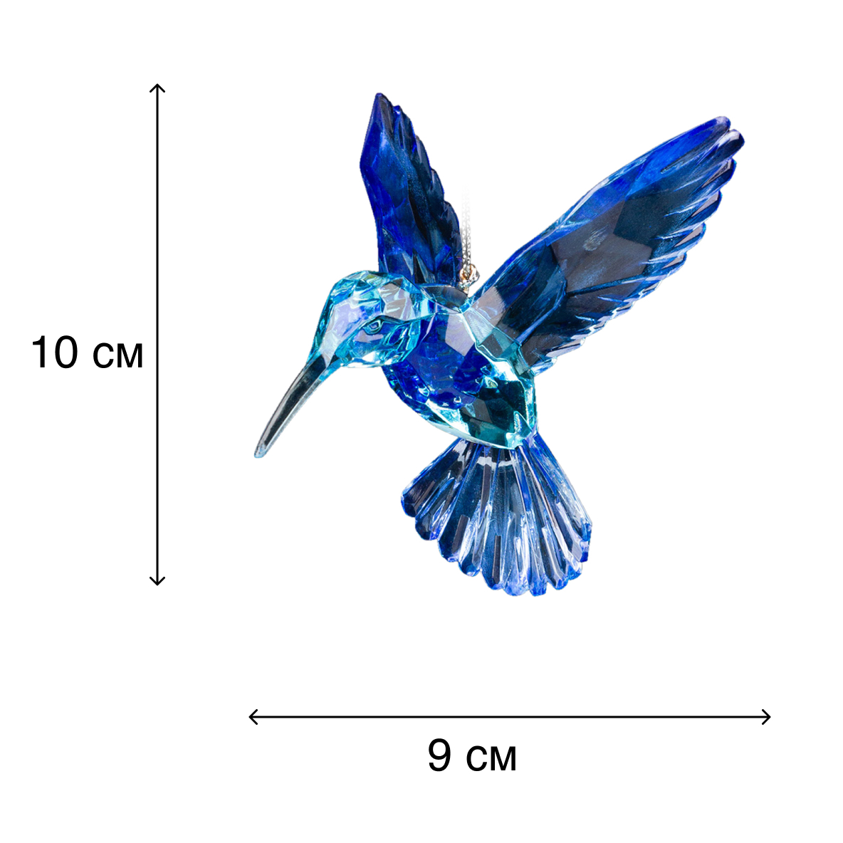 Яркая объемная колибри создает впечатление настоящей птицы, которая вот-вот взлетит. Поверхность со множеством граней завораживает игрой света и тени и добавляет эффект глубины. Цвет аквамарин придаёт украшению особую насыщенность.