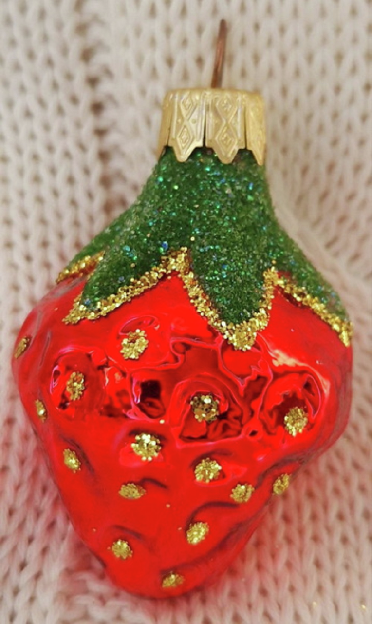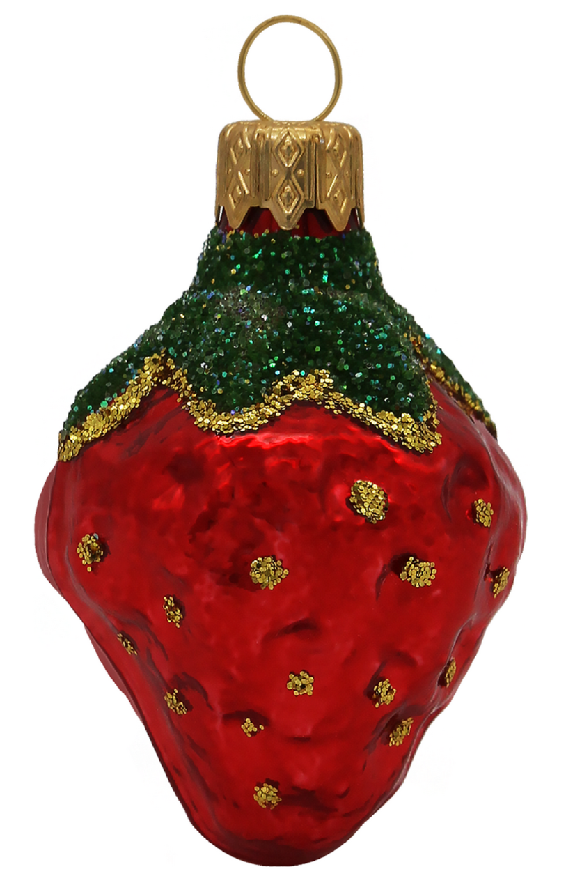 Формовая игрушка из стекла Клубничка. Фигурка расписана вручную. В индивидуальной подарочной упаковке. Яркое и стильное украшение, которое станет прекрасным дополнением вашей новогодней коллекции. Выполнена игрушка из прочного стекла в форме клубники, что придает ей особую легкость и изящество. Высота игрушки 6 сантиметров, что позволяет размещать ее на любой высоте и на любом виде елки.
