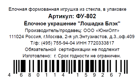 Украшение елочное Коломеев Лошадка блэк, 10см