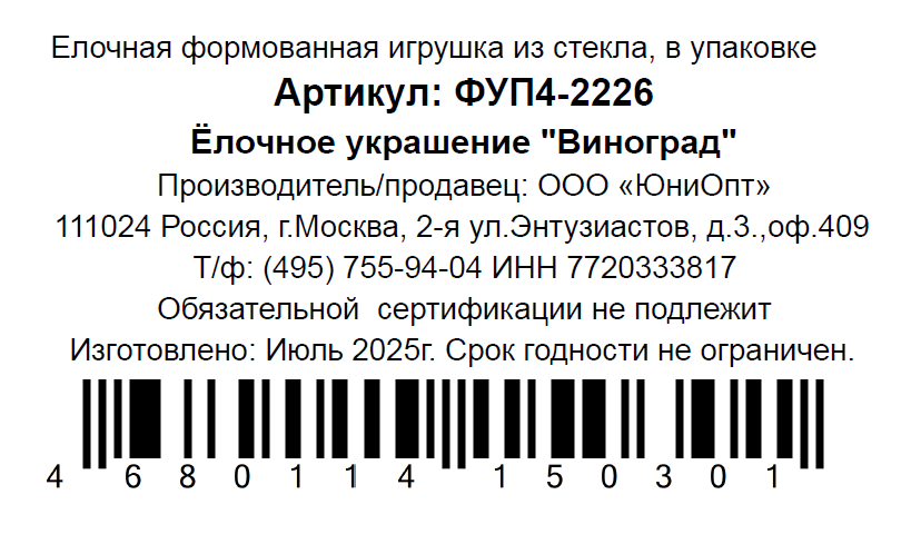 Елочное украшение в форме Винограда от бренда Коломеев — это яркий и оригинальный элемент новогоднего декора. Украшение подвесное, выполнено из стекла, высота украшения - 10 см. Елочная игрушка от бренда Коломеев "Виноград" станет прекрасным подарком для детей и взрослых. Она упакована в подарочную коробку и может быть использована для украшения новогодней елки или в качестве интерьерного аксессуара, а также стать отличным подарком для близких и друзей.Это украшение — не просто игрушка, а ключевой элемент дизайна вашей новогодней елки. Его нежный образ и выверенная цветовая гамма мгновенно преображают пространство, создавая настроение уютного зимнего чуда. Смело комбинируйте его с другими украшениями: благодаря его стильности, ваша ёлка будет выглядеть продуманно и современно, даже в самом смелом декоре.Новый год - время чудес и волшебства. Создайте праздничное настроение вместе с нами!