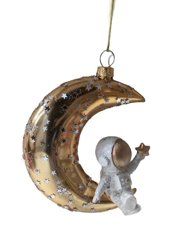 Каждая деталь игрушки проработана с особым вниманием к деталям, а луна воссоздана так, что кажется, будто она прямо перед вами. Эта удивительная елочная игрушка станет прекрасным украшением вашей елки, придавая ей загадочный и волшебный вид.