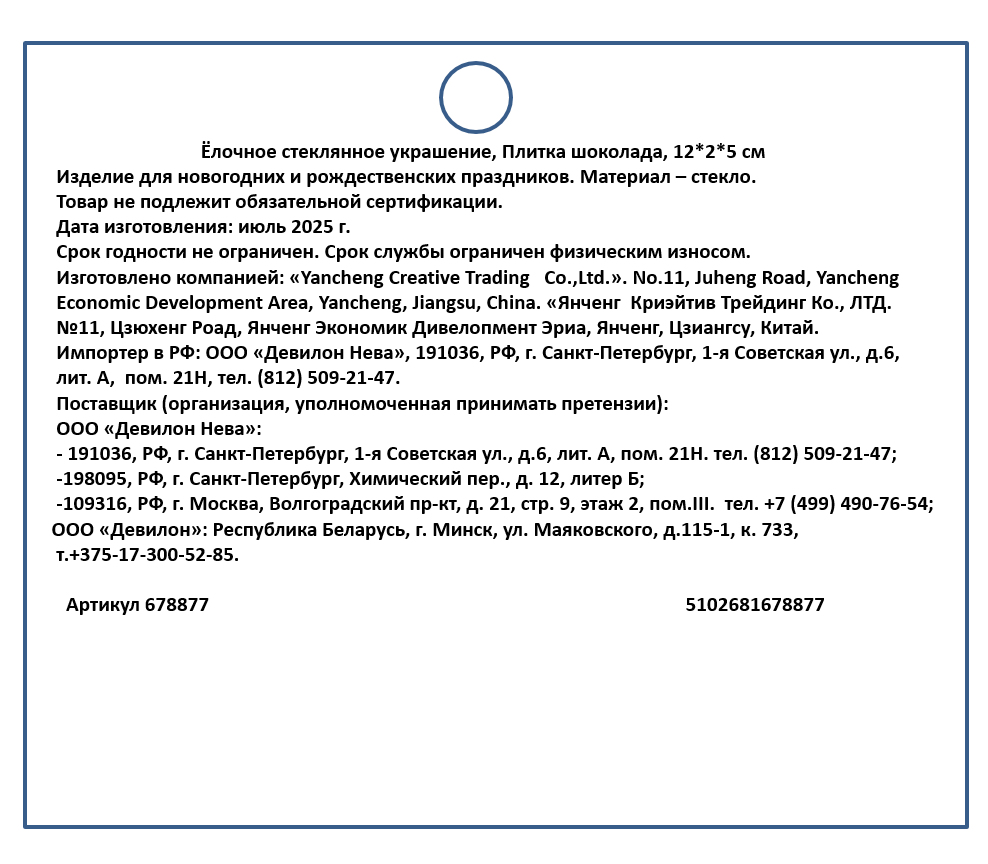 Украшение елочное Плитка шоколада, 12 x 2 x 5см