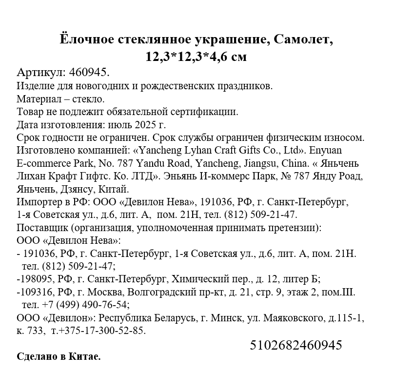 Украшение самолет, 12.3 x 12.3 x 4.6см поможет создать особую праздничную атмосферу. Используйте ее как украшение интерьера, дополнение к подарку близким и друзьям, сувенир и просто милую вещицу, которая подарит позитивные эмоции и взрослому, и ребенку.