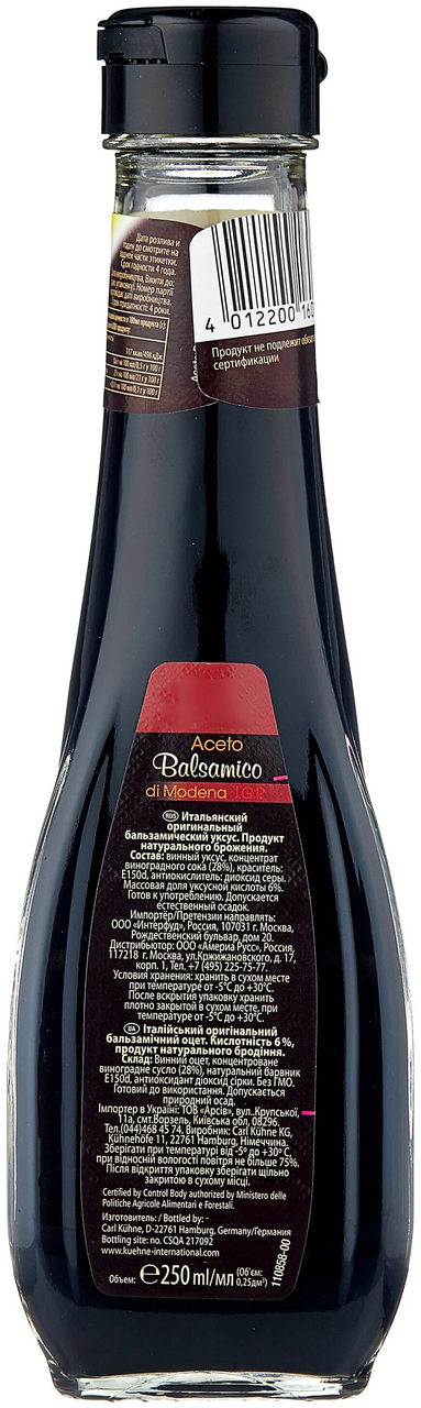 Уксус бальзамический Kuhne Aceto Balsamico di Modena IGP красный, 250мл