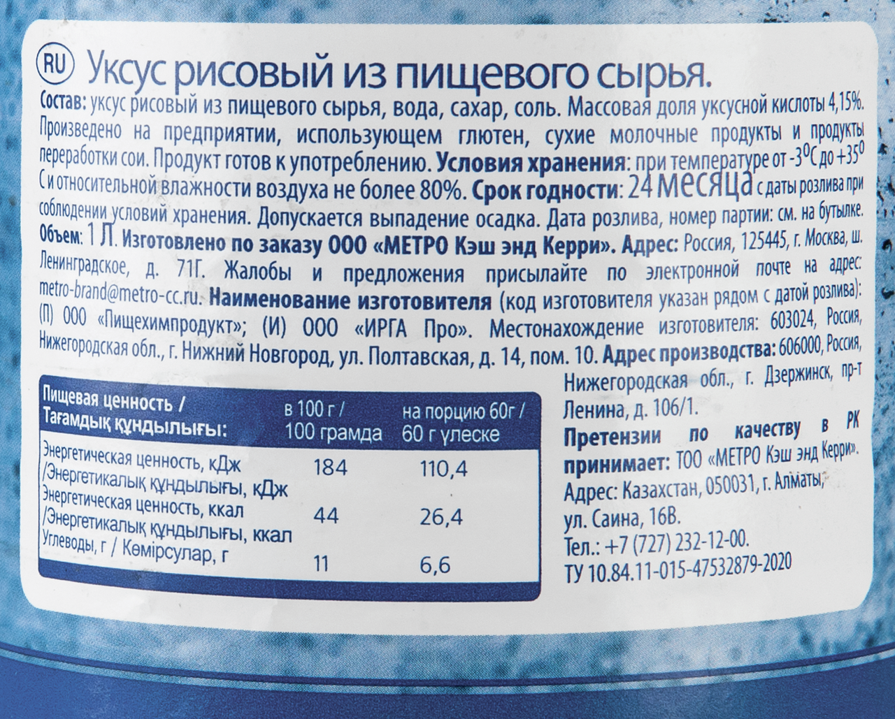 Уксус рисовый Metro Chef, 1 л, изготовленный из пищевого сырья, является необходимым ингридиентом в приготовлении риса для суши и роллов, так же применяется для маринования птицы, рыбы, морепродуктов, овощей. Его добавляют в соусы и заправки для салатов.