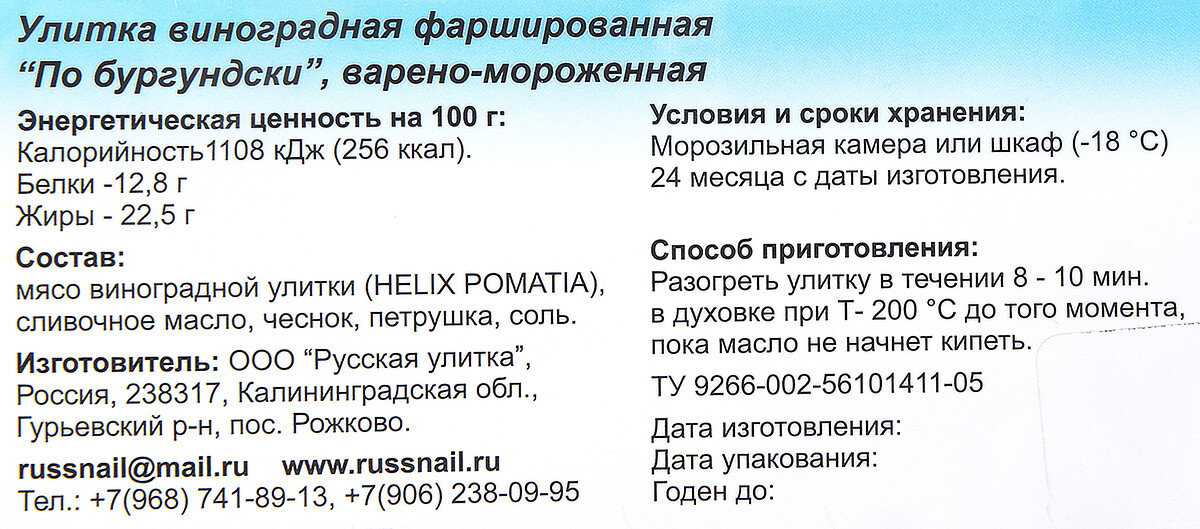 Улитка по-бургундски Escargots - это качественный продукт, произведенный во Франции с учетом всех стандартов качества. Этот деликатес идеально подойдет к белому вину и украсит любой торжественный стол: от романтической встречи до фуршета. Улитки по-бургундски – это изысканное блюдо для гурманов, обладающее неповторимыми вкусовыми качествами и выдающимися полезными свойствами. Улитка по-бургундски Escargots представляют собой готовое блюдо. Достаточно поместить их на 10 минут в духовку, и вы сможете прикоснуться к традициям высокой французской кухни.
