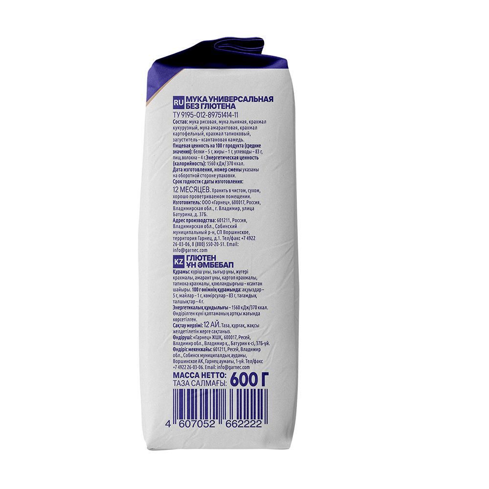 Мука универсальная Garnec без глютена, 600 г — мечта каждой хозяйки. Она идеально подходит для любой выпечки: хлеба, пирожков, пельменей, тортов, кексов, блинов — и все это без глютена. Состав продукта чист и не содержит никаких вредных добавок. Он состоит из нескольких видов муки грубого помола и крахмала. Такая смесь подойдет как для людей с непереносимостью глютена, так и для тех, кто придерживается принципов правильного питания. Потребительские свойства муки достигаются за счет тщательного выбора исходного сырья.