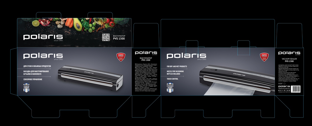 Прибор осуществляет качественное вакуумирование, тем самым сохраняя все полезные качества и продлевая свежесть до 5 раз дольше, подходит для сухих и влажных продуктов. Сенсорное управление прибора происходит с верхней панели, кнопки влагозащищенные, что обеспечивает удобство использования. Вакуумный упаковщик самостоятельно контролирует оптимальный уровень давления в упаковке для выбранного продукта.