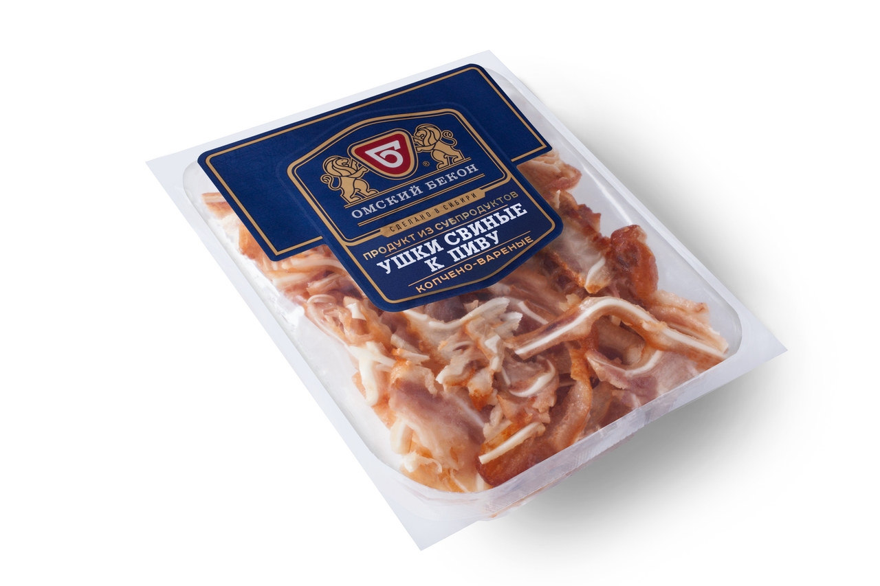 Ушки свиные Омский бекон к пиву копчено-вареные, 200г