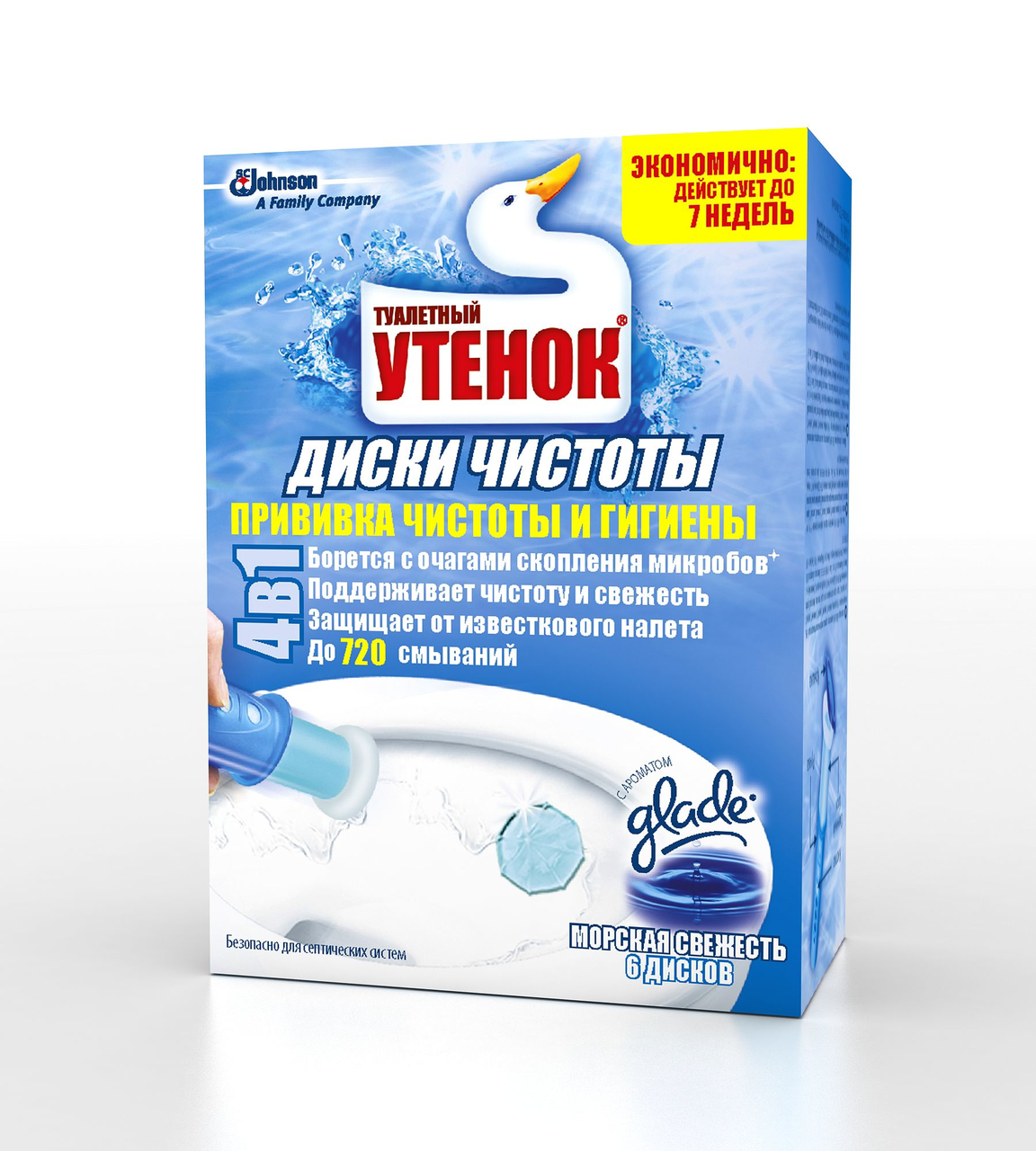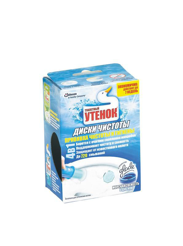 ТУАЛЕТНЫЙ Утенок Гелевый очиститель унитаза с дозатором Диски чистоты Морская свежесть 38г