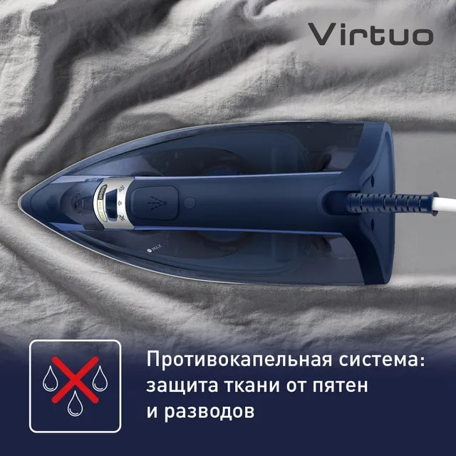 Утюг Tefal FV1713E0 создан для быстрого и удобного глажения. Паровой утюг обладает мощностью 2000 Вт и создает постоянный пар 24 г/мин для эффективного глажения при каждом использовании. Паровой удар до 90 г/мин разглаживает стойкие складки. Утюг Virtuo от Tefal сочетает удобство использования и компактный дизайн. Антипригарная подошва и эргономичный триггер подачи пара обеспечивают простое и комфортное глажение. Функция Капля-стоп предотвращает появление пятен на вашей одежде во время глажения. Компактный дизайн с эргономичным триггером подачи пара и антипригарной подошвой для комфортного глажения. Утюг обладает множеством полезных функций, отличается легкостью и удобством. Он оснащен противокапельной системой, которая предотвращает выход воды из подошвы. Есть встроенная интегрированная система самоочистки, которая не позволяет образовываться налету в отсеке генерации пара.