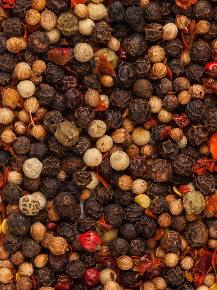 Перец черный, белый, зеленый, кориандр, паприка, чили, розовый перец.
