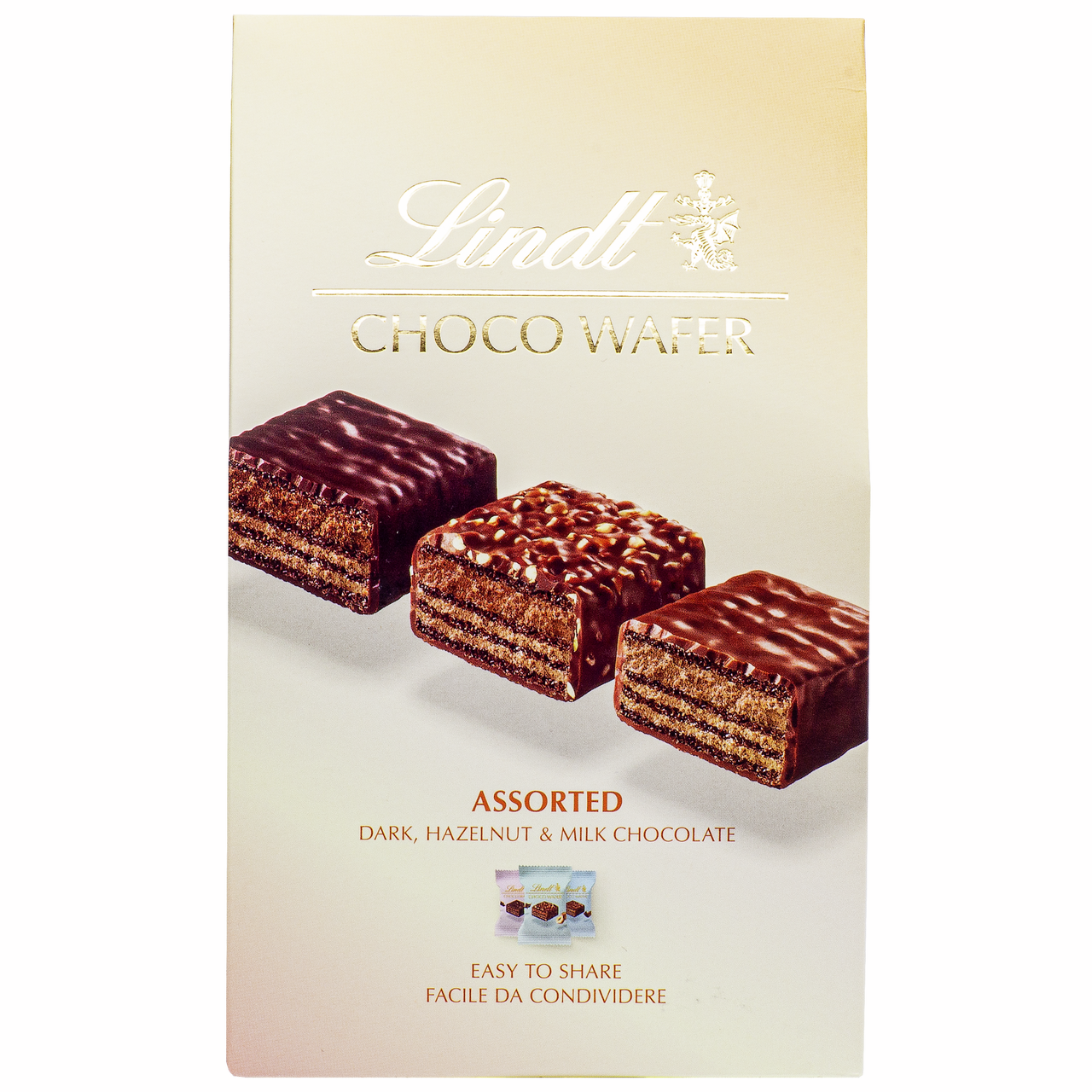 Вафли Lindt молочный и темный шоколад с фундуком ассорти, 138г