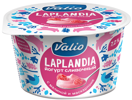 Йогурт Valio Laplandia с малиной и сыром маскарпоне сливочный 7.2%, 180г