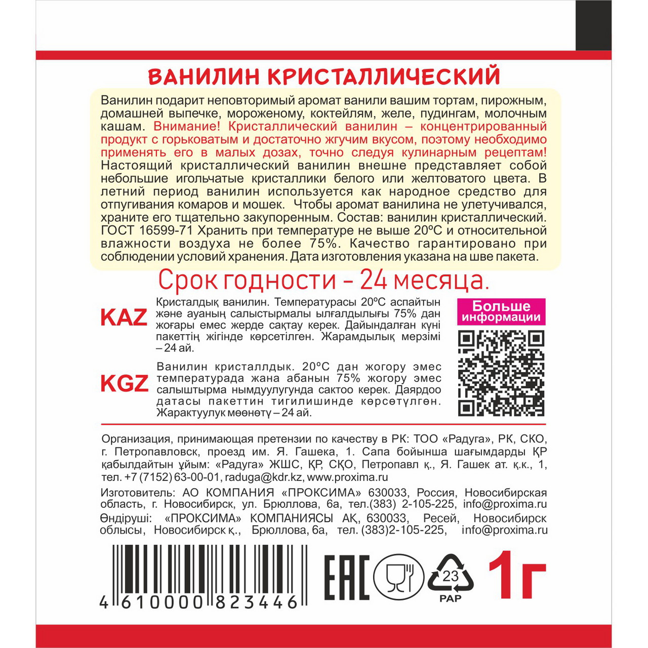 Ванилин подарит неповторимый аромат ванили вашим тортам, пирожным, домашней выпечке, мороженому, коктейлям, желе, пудингам, молочным кашам. Внимание. Кристаллический ванилин - концентрированный продукт, поэтому необходимо применять в малых дозах, точно следуя кулинарным рецептам. Настоящий кристаллический ванилин внешне представляет собой небольшие игольчатые кристаллики белого или желтоватого цвета. Вкус горьковатый и достаточно жгучий. В сухом виде обладает легким приятным типичным ароматом ванили. Чтобы аромат ванилина не улетучивался храните его тщательно закупоренным.
