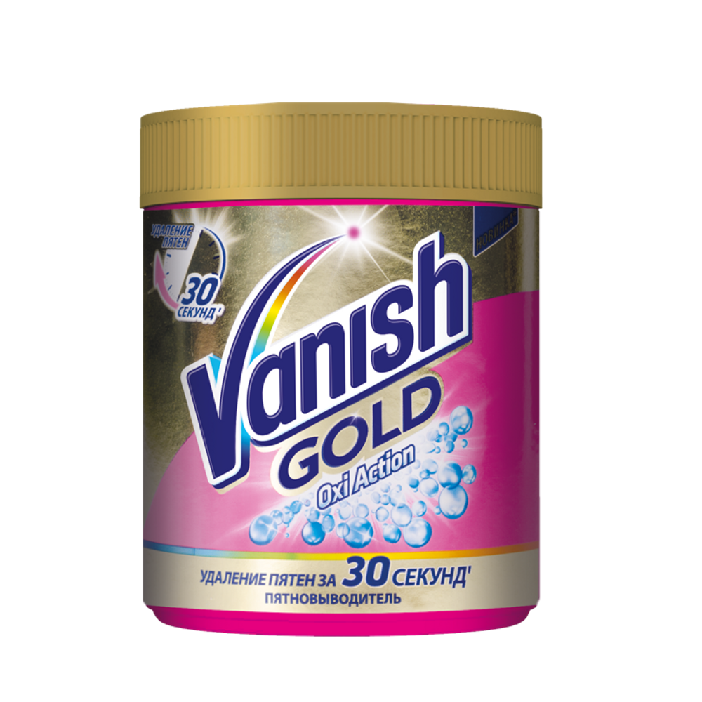 Встречайте новый золотой стандарт выведения пятен. Vanish Gold Oxi Action – лучший пятновыводитель Vanish. Новая формула порошка настолько эффективна, что справляется с пятнами всего за 30 секунд! Безопасен для белых и цветных вещей. Доступен в форматах: 90 г, 250 г, 500 г, 1 кг.