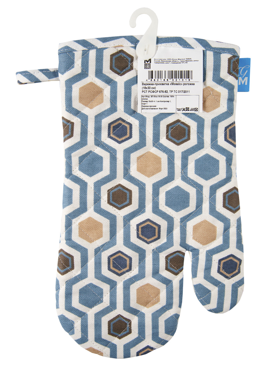 Варежка-прихватка Guten Morgen стеганая рогожка мозаика, 18 x 30см