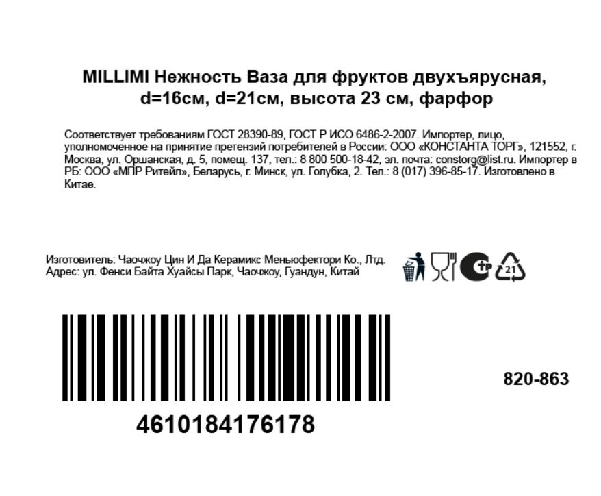 Ваза для фруктов Millimi Нежность двухъярусная, 23см