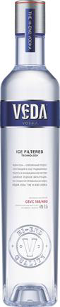 Водка Veda — современный продукт высокого класса, сочетающий в себе как традиционные технологии, так и уникальный метод ледяной фильтрации, в процессе которого спирт проходит дополнительную очистку в течение 26 часов, и перед финальным розливом водка охлаждается до -5С, что стабилизирует её состав, придаёт гармонию аромату и вкусу готового продукта.