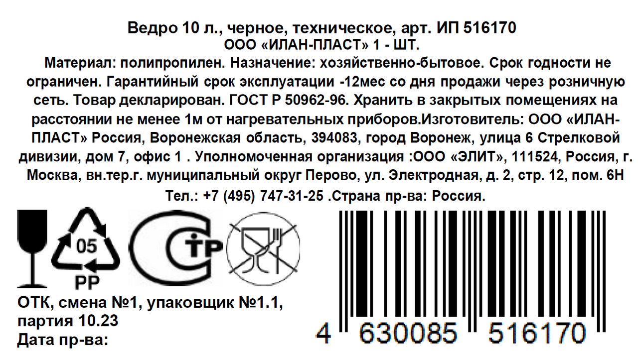 Материал - полипропилен. Не предназначено для пищевых продуктов. Эргономичная форма изделия обеспечивает устойчивость при пользовании, исключая вероятность опрокидывания. Для переноски предусмотрена хорошо закрепленная ручка. Благодаря уникальным свойствам полимеров емкость высокоустойчива к различным воздействиям, включая высокую влажность, повышенные и пониженные температуры, прямые солнечные лучи, абразивные вещества, агрессивные моющие средства. Гладкая поверхность стенок позволяет устранить загрязнения и выполнить полную очистку буквально за несколько минут. Изделие не деформируется при высоких нагрузках, устойчиво к механическим повреждениям и царапинам, сохраняет первоначальные характеристики до окончания срока эксплуатации.