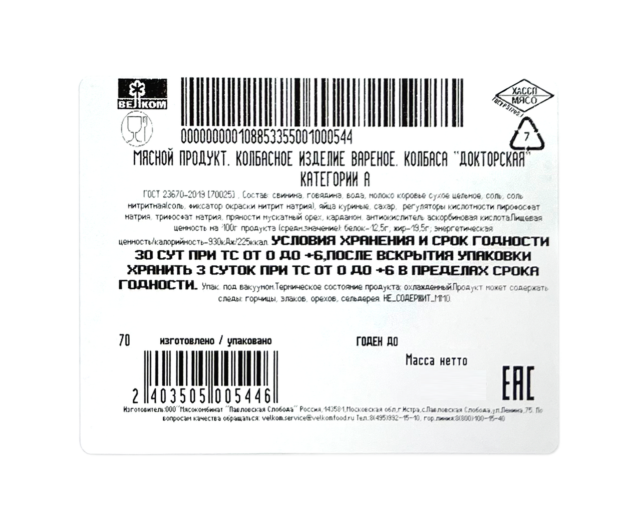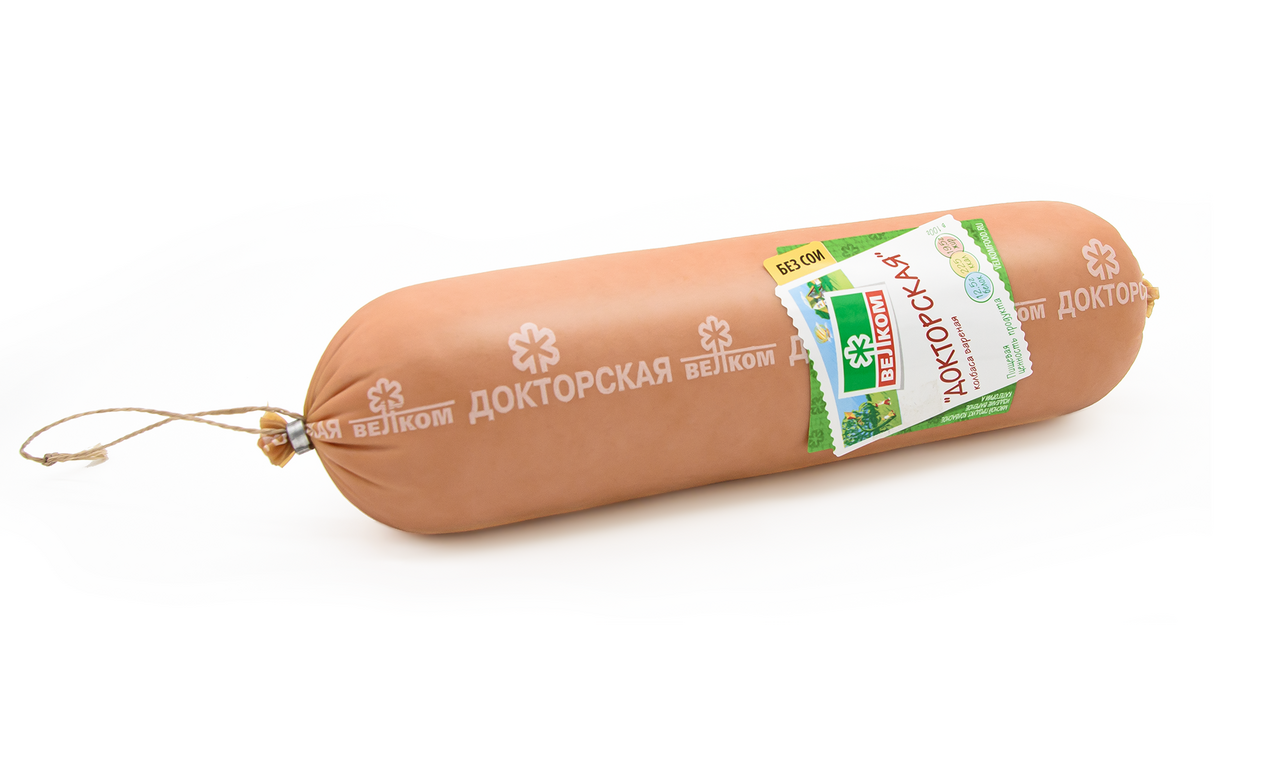 Колбаса Велком Докторская в белковой оболочке отвечает всем стандартам качества мясной продукции. Нежный фарш для этого продукта изготовлен по рецептуре ГОСТ. Эта колбаса подходит для употребления в качестве самостоятельного продукта в жареном, сыром и отварном виде, а также она станет гармоничным дополнением в салатах, супах или вторых блюдах. Колбаса Докторская от Велком хорошо сочетается с овощами и сыром – делайте питательные и полезные бутерброды для всей семьи. К тому же в составе колбасы нет сои и ГМО.