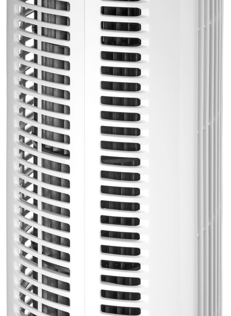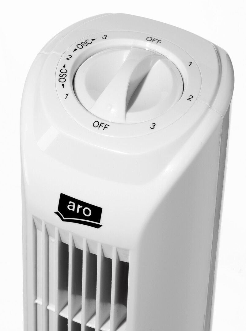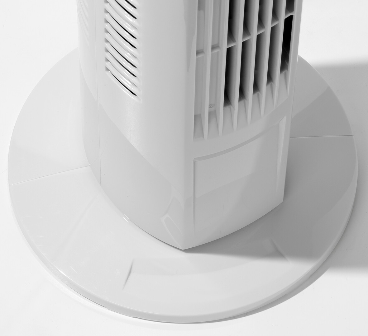 Управление осуществляется при помощи лаконичной механической панели. Вентилятор имеет 3 скорости работы и широкоугольный поворот в горизонтальной плоскости. Широкие аэродинамические лопасти обеспечивают мощный воздушный поток. Высота прибора регулируется и может достигать 1,2 метра. Вентилятор имеет устойчивое крестообразное основание.