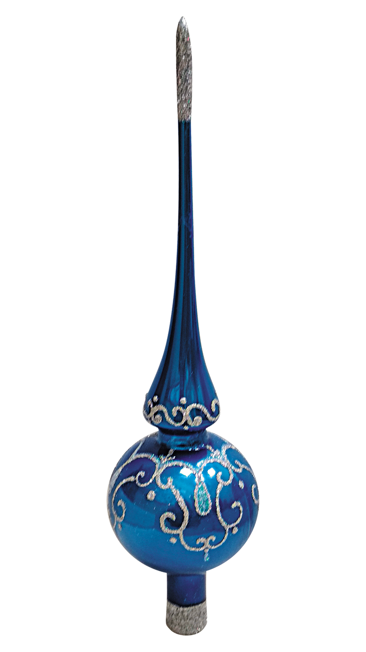 Верхушка Ажурная капля, 28 см предназначена для украшения макушки новогодней сосны или елки. Оригинальная игрушка придает праздничной композиции завершенный эффектный вид и красиво контрастирует с темно-зеленой хвоей дерева. Изделие выполнено в размере 28 см, что позволяет ему надежно фиксироваться на ветке и снижает риск случайного падения. Верхушка изготовлена в форме классического шара, который дополняет расположенный сверху изящный узкий конус. Она отличается глубоким и насыщенным цветом, подчеркнуть который помогает затейливый узор, выполненный из серебристых блесток. Особенно впечатляюще такое украшение смотрится в свете включенной елочной гирлянды. Приобрести верхушку Ажурная капля, 28 см можно в торговом центре METRO.