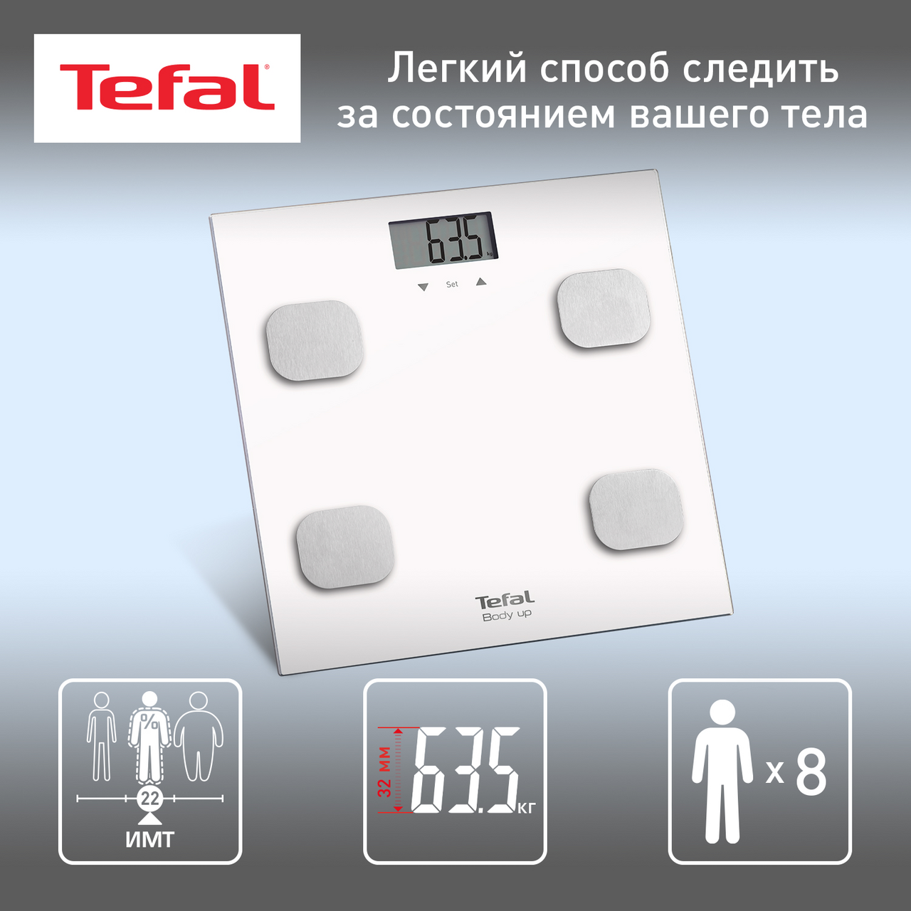 Умные весы Tefal Body Up созданы для легкого отслеживания изменения веса, уровня жировой массы и индекса массы тела. Благодаря прочной и элегантной стеклянной платформе, большому и четкому LCD-дисплею и автоматическому распознаванию до 8 пользователей, с возможностью сохранения данных, вы с легкостью сможете следить за составом вашего тела.