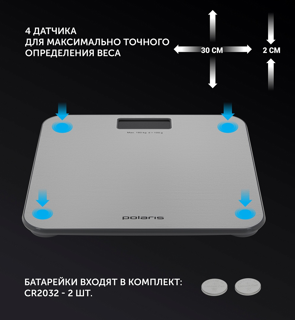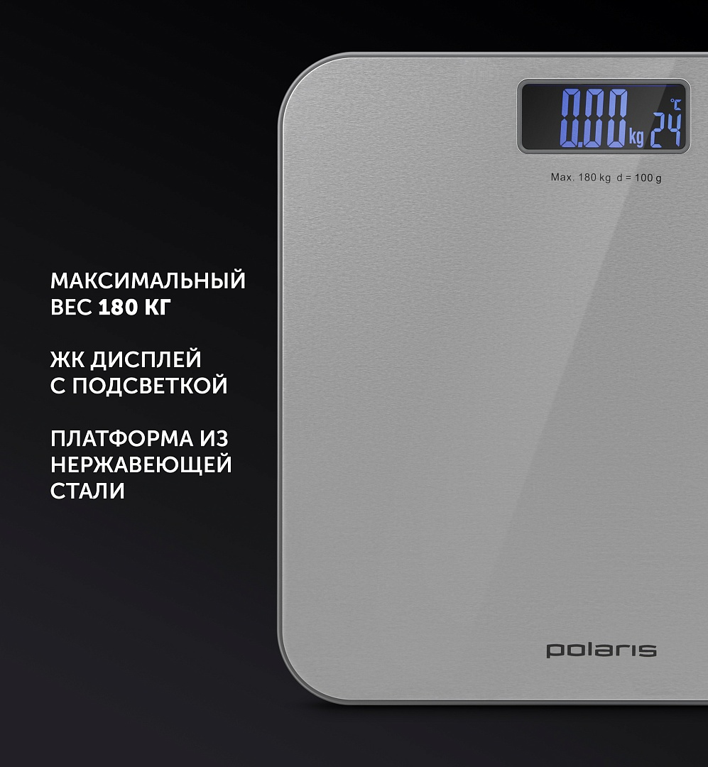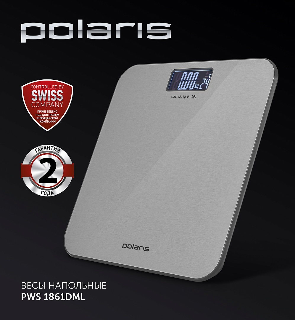 Весы Polaris напольные PWS 1861 DML — незаменимый помощник в контроле массы тела. Изделие выполнено из прочной и долговечной нержавеющей стали. Благодаря технологичной сенсорной системе удается добиться максимально точного определения веса. Необходимая информация отображается на большом жидкокристаллическом дисплее. В весы дополнительно встроена метеостанция, позволяющая в любой момент узнать температуру в комнате. Лаконичный корпус стального оттенка смотрится очень стильно и эстетично. Напольные весы выдерживают нагрузку до 180 кг и дают возможность выбрать подходящую единицу измерения (килограмм или фунт). Устройство идеально подходит всем, кто привык следить за своей внешностью и здоровьем. Работает от двух элементов питания типа AAA, которые входят в комплект, а также имеют возможность самоподключения к мобильным устройствам. В данной модели предусмотрена функция автоматического включения и выключения, пользоваться ею предельно легко и удобно. Специальные индикаторы оповестят вас об уровне заряда батареи или перегрузке, чтобы вы могли своевременно принять соответствующие меры. Максимальная погрешность составляет всего 0,1 кг, поэтому взвешиваясь, вы получаете предельно точные результаты. При этом напольные весы — не просто качественный прибор, помогающий контролировать массу тела. Это оригинальный и стильный гаджет, который будет органично смотреться в ванной, тренировочной комнате и даже в большом спортзале. А за счет небольшой массы — всего 1,9 кг, вам удастся без проблем перемещать весы на свое усмотрение и даже брать их в поездку.