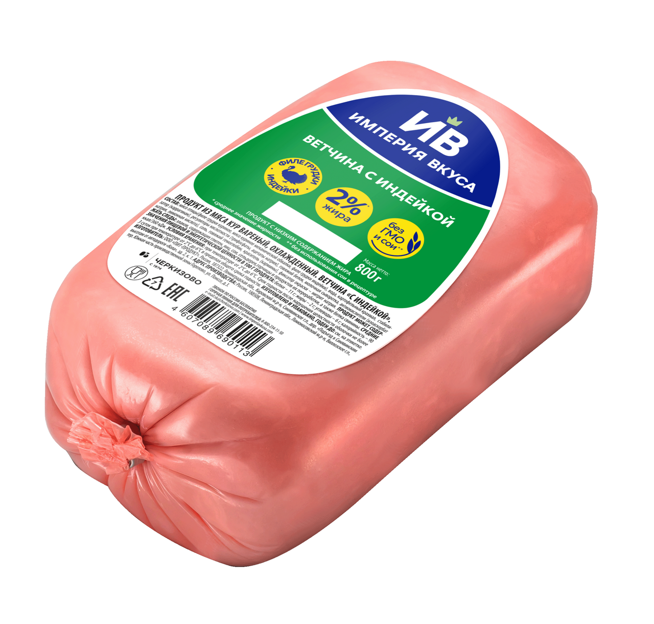 Ветчина из Индейки Империя вкуса, 800г не только разнообразит ваш стол, но и зарядит здоровьем и бодростью. Индейка содержит аминокислоты, способствующие хорошему настроению. Ветчина Империя вкуса от Черкизовского МК произведена из натуральных продуктов с учетом современных технологий. Мясо птицы специальным образом стерилизуется, сохраняя при этом свои полезные свойства.