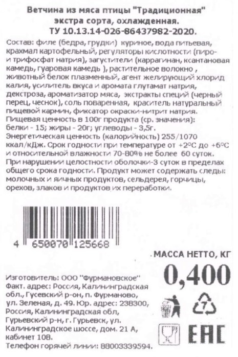 Ветчина Dolgovgroup Традиционная из мяса птицы, 400г
