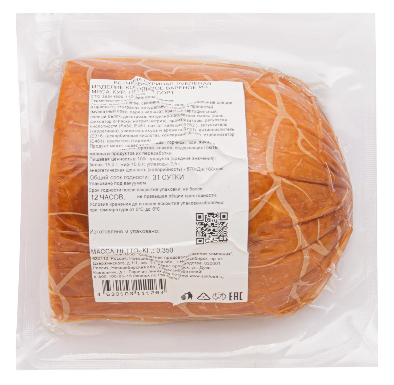 Ветчина куриная Высокий вкус вареная, 350г