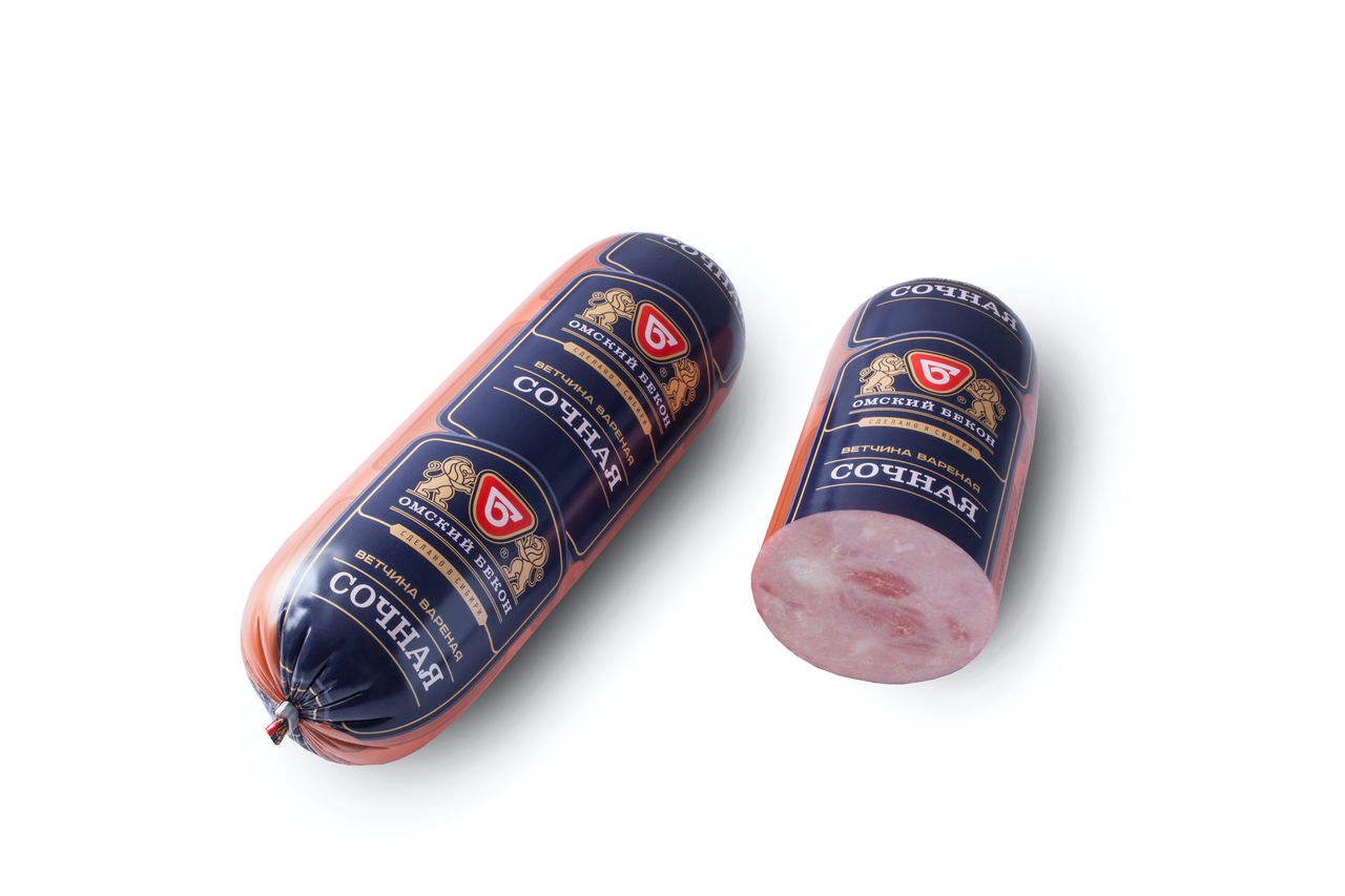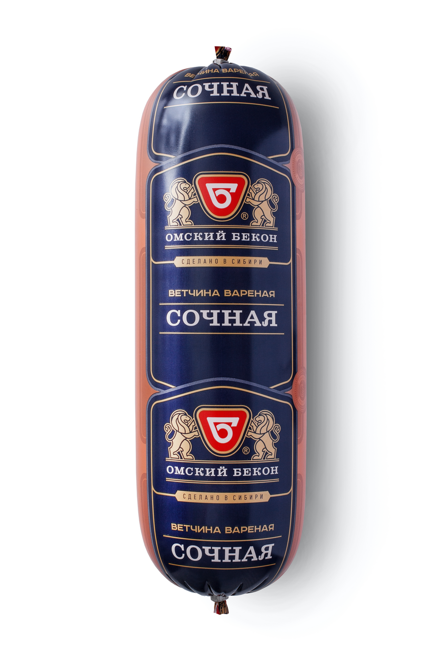 Ветчина Омский бекон Сочная с характерным срезом сделана из свинины с добавкой куриного мяса. Для пикантности в нее добавлены специи (черный и красный перец, кориандр, розмарин, мускатный орех). Тонкие кусочки ветчины украсят и сделают более питательными бутерброды и сэндвичи. Ломтики можно разместить на мясной тарелке, которая дополнит праздничный стол. Деликатес с легкостью заменит другие блюда во время обеда или ужина, хорошо сочетается с картофелем, кашами, овощами и хлебом. Его можно взять с собой на пикник или в поездку, чтобы быстро и вкусно подкрепиться. В свинине и курице содержится много белка, витаминов и минералов, которые необходимы как для взрослого, так и детского организма, поэтому продукт можно ввести в повседневный рацион.