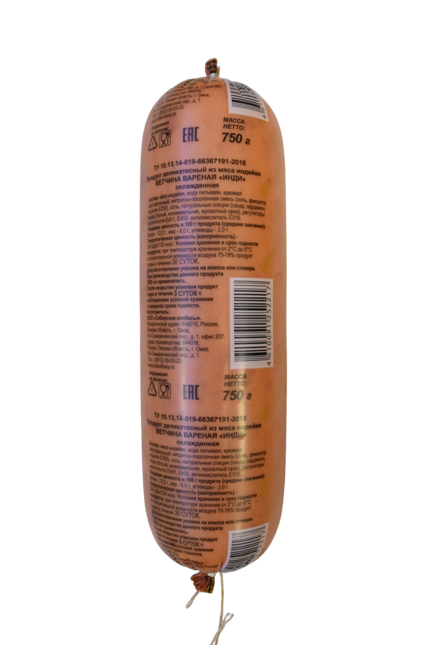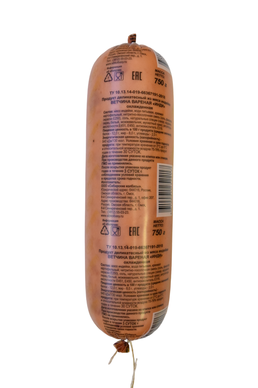 Ветчина Сибирские колбасы Инди вареная, 750г