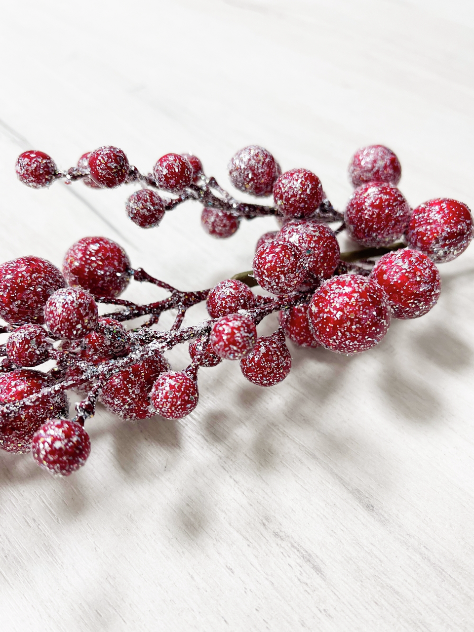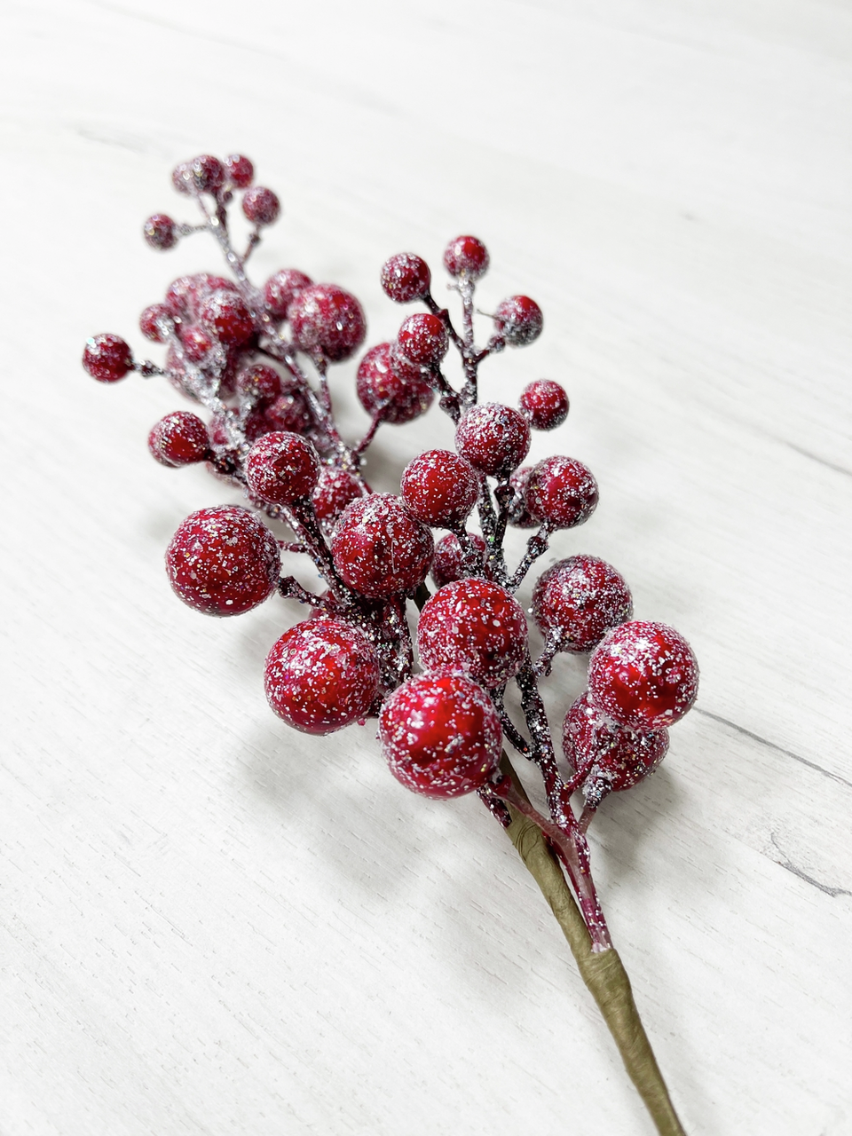 Ветка из красных ягод Christmasdeluxe в блестках пенопласт, 35см