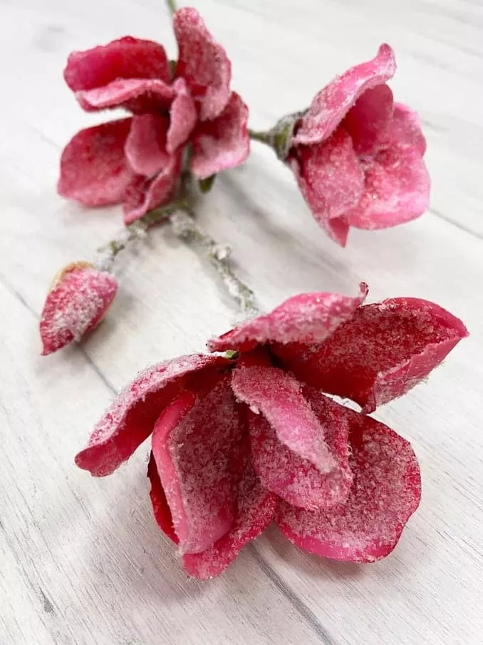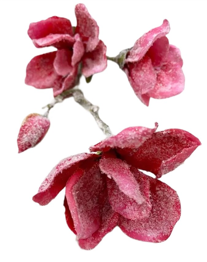 Ветка магнолии ChristmasDeLux заснеженная ярко-розовая, 85см