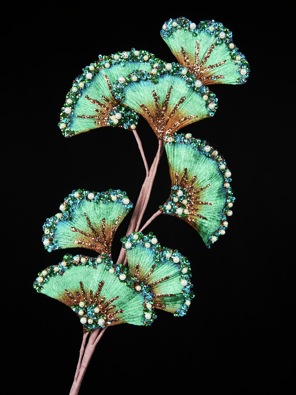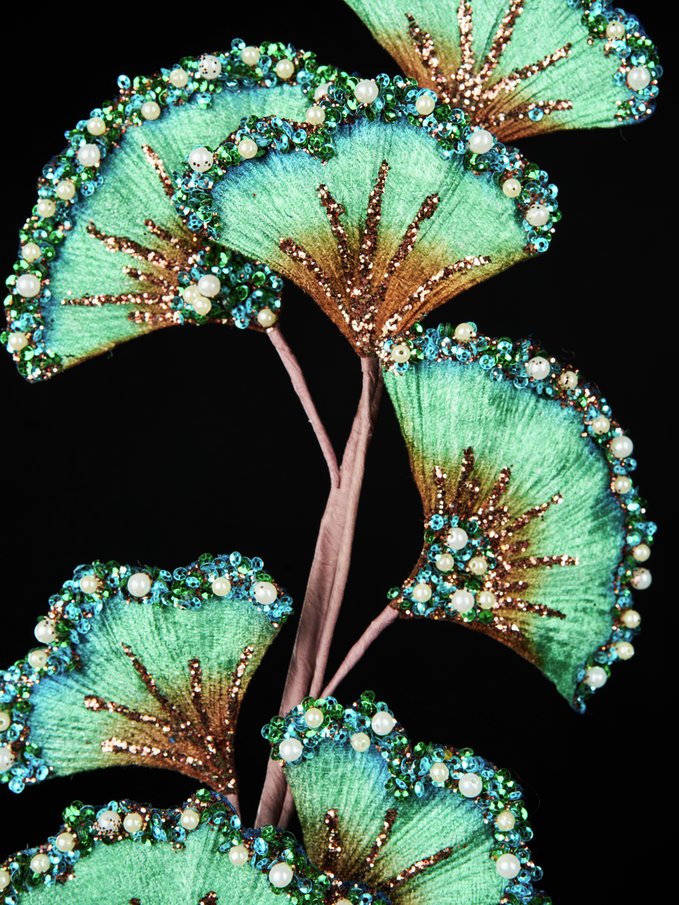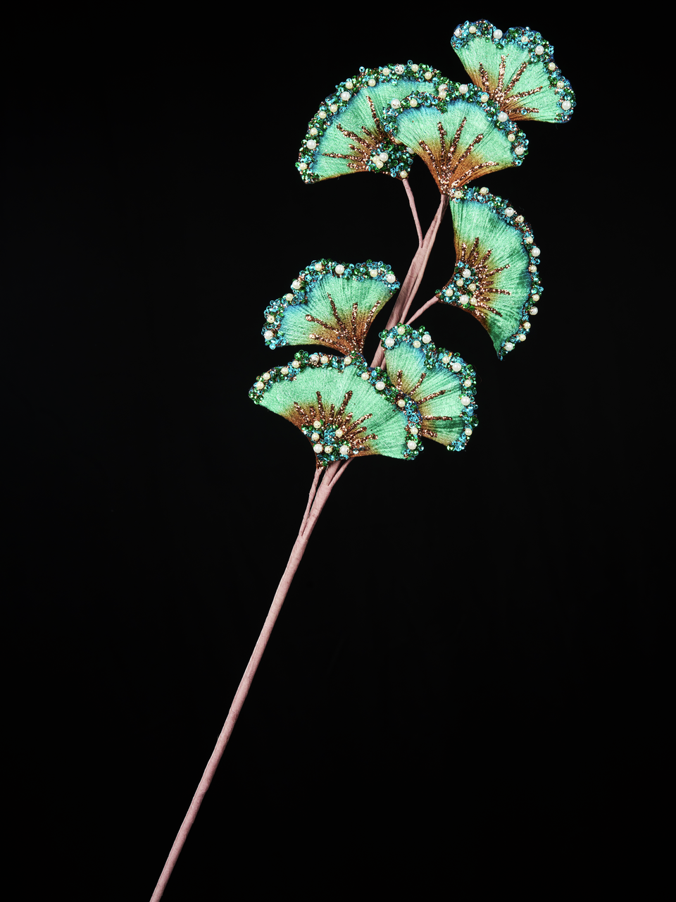 Веточка гинго Christmasdeluxe бирюзовая, 60см