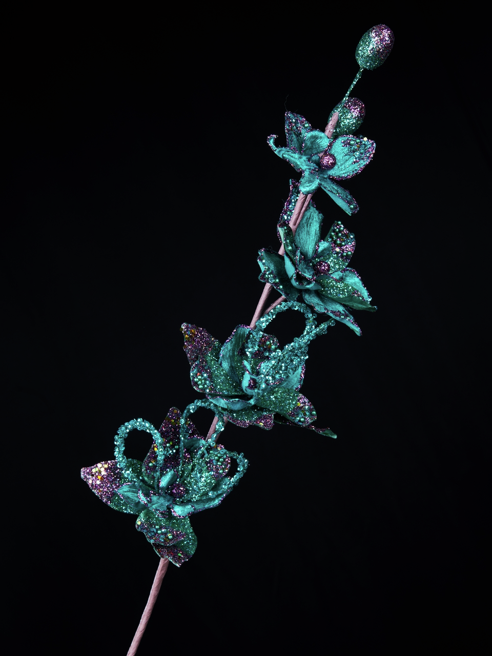 Веточка с цветами орхидеи Christmasdeluxe бирюзовая, 66см