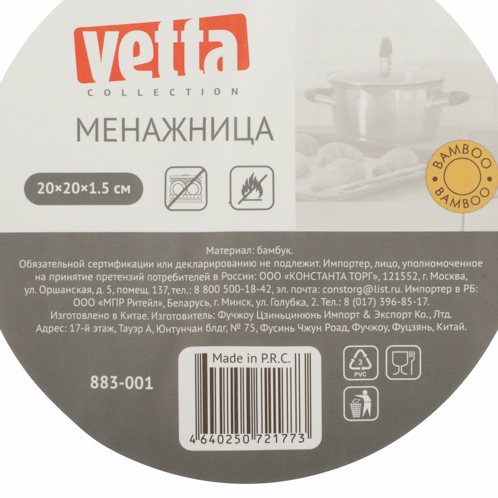 Менажница Vetta бамбук 3 секции, 20 x 20 x 1.5см