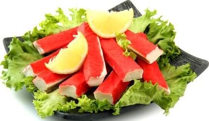 Состав: фарш рыбный сурими, вода, крахмал, масло растительное, сахар, соль, яичный белок, пищевые добавки: ароматизатор идентичныйнатуральному крабовый; усилитель вкуса и аромата: глутамат натрия, красители кармины, маслосмолы паприки.Пищевая ценность: белков не менее 5г, жиров не менее 1г, углеводов не менее 10г.Энергетическая ценность: 73ккалУпаковано под вакуумом. Продукт готов к употреблению.Хранить при Т от 0C до +5CСрок годности: 75 дней