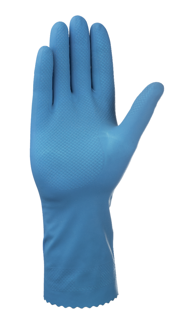 Перчатки хозяйственные латексные Vileda с внутренним хлопковым напылением, размер 8 (M). Манжета - срез зубцами. Предназначены для защиты рук от вредного воздействия агрессивных моющих и чистящих веществ во время уборки, стирки, мытья автомобиля, садовых работ. Перчатки обладают повышенной плотностью, что делает их более устойчивыми к разрывам и истиранию. Дополнительная хлорная обработка внутренней поверхности перчаток для нейтрализации аллергена, а также дополнительная обработка внешнего слоя для повышения сопротивляемости химическим средствамМатериал основы: латекс Материал покрытия: отсутствует Раземер: MЦвет: голубой
