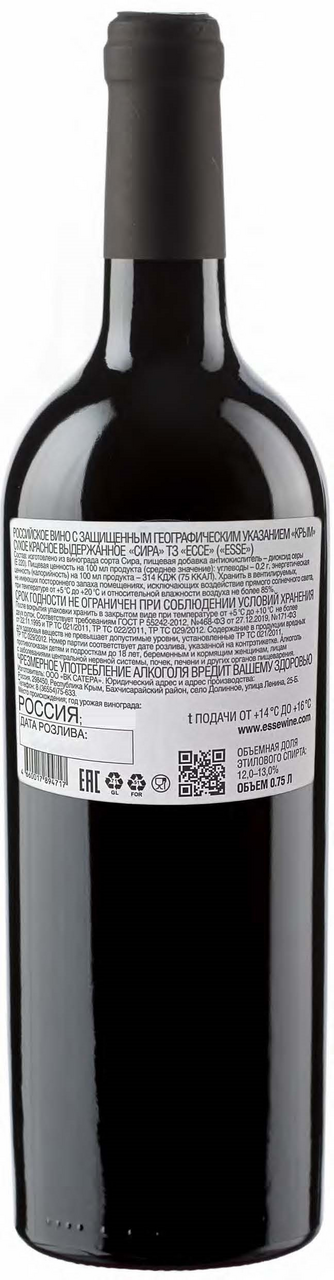 Вино Esse Sirah красное сухое, 0.75л