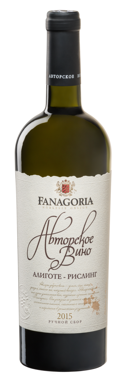 Авторское вино Алиготе-Рислинг — белое сухое вино, изготовленное из винограда, выращенного на фанагорийских виноградниках винодельческого региона Кубань, Таманский полуостров с контролем урожайности. При создании вина использовалось пневматическое прессование и ферментация сусла-самотека при контролируемой температуре 15-16С. Авторское вино — эксклюзивная линейка вин, созданная мастерами-энологами по уникальной рецептуре. В основе купажей и моносортовых вин — классические и автохтонные сорта фанагорийского винограда. Виноделы подобрали сорта винограда для купажей таким образом, чтобы с одной стороны подчеркнуть их индивидуальные особенности, а с другой — гармонично расширить палитру вкусов и ароматов. Вино обладает утонченным ароматом с тонами цветущего подсолнуха, лайма и луговых трав. Хорошо дополнит летние овощные салаты, салаты с белым мясом, сырное ассорти, запеченную курятину, утку или свинину с яблоками.