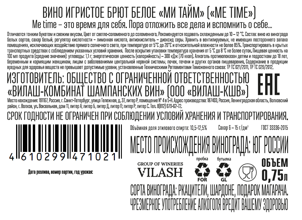 Вернуться назад Вино игристое Me Time белое брют, 0.75л Оставить отзыв Артикул: 69221 Поделиться В избранное Раскупили Сообщить о поступлении Подтвердить возраст Узнать наличие в магазинах Бренд ME TIME Страна-производитель Россия Подробнее Описание Игристое вино, созданное для тех моментов, когда хочется остановиться и насладиться собой. Мягкое и элегантное игристое, созданное для теплых, уютных моментов и особого настроения. Полное описание Характеристики Бренд ME TIME Страна-производитель Россия Раскупили Сообщить о поступлении Подтвердить возраст Узнать наличие в магазинах