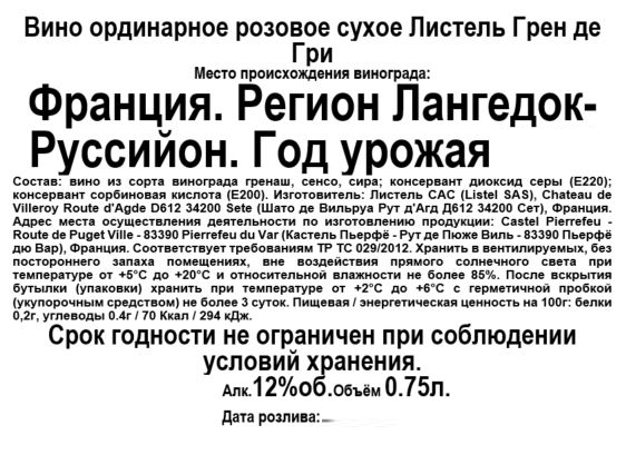 Нежно-розовый цвет с красивым блеском. Аромат с тонами красных ягод, персика, абрикоса, оттенками трав, цветов и мускатного ореха. Освежающее, легко пьющееся вино с гладкой текстурой и отличным балансом сочной кислотности. Яркий фруктовый вкус с оттенками цитрусовых, косточковых фруктов, пряностей и цветов, развивающихся в освежающем длительном послевкусии. Серое вино из винограда сортов Гренаш, Сира и Сенсо, выращенного в обширной зоне Terres du Midi, Для изготовления вина используется только сок-самотек, отсюда и название вина - серый. Винификация напитка проходит по традиционному методу создания белых сухих вин. Очень простое, освежающее, мягкое и легкое вино Грэн де Гри превосходно сочетается с сырами, морепродуктами, блюдами из рыбы и белого мяса, фруктовыми салатами и многими другими продуктами.