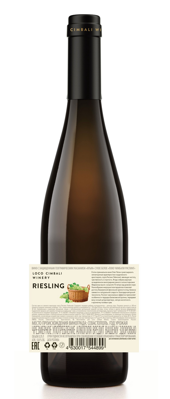 Вино Loco Cimbali Riesling белое сухое, 0.75л