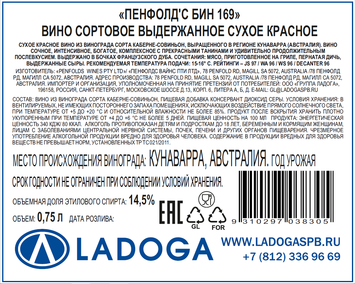 Создано, чтобы отразить современный подход Penfolds к виноделию, подчеркивая как терруарность так и развитие Каберне Совиньон во французском дубе. Стиль, который сразу же напоминает Penfolds, но в то же время иллюстрирует его постоянный поиск разнообразия стилей. Честное отражение региона, свидетельствующее о многолетней приверженности Пенфолда виноградникам Кунаварры. Выдержка 17 месяцев в бочках из французского дуба (56% новых, 44% 1-го года выдержки). Вино будет демонстрировать свои лучшие качества в период 2025 – 2050г. Создано, чтобы отразить современный подход Пенфолдс к виноделию, подчеркнув как региональность, так и созревание Каберне Совиньон в бочках из мелкозернистого французского дуба. Стиль вина, с одной стороны, сразу указывает на Пенфолдс, но с другой иллюстрирует непрекращающийся поиск разнообразия и разделения стилей. Вино является классическим отражением терруара региона и свидетельством давней приверженности Пенфолдс виноградникам Кунаворры.