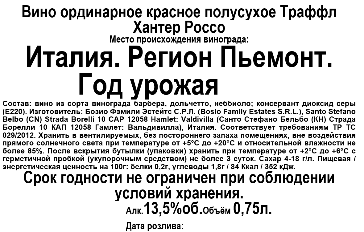 Вино Truffle Hunter Хантер Россо красное полусухое, 0.75л