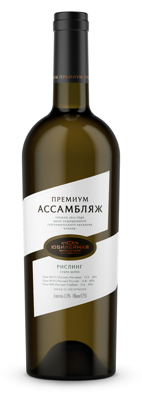 Вино ВИНОДЕЛЬНЯ ЮБИЛЕЙНАЯ Премиум ассамбляж белое, полусухое 0,75 л