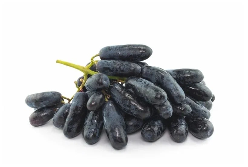 Виноградины имеют овально-яйцевидную форму и темно-синий окрас с легким сизым оттенком. Под кожицей средней толщины находится мясистая, очень сочная мякоть, обладающая гармоничным вкусом с легкими мускатными оттенками. Виноград – ценный источник витаминов, аминокислот, минералов и антиоксидантов. Он снижает риск развития сердечно-сосудистых заболеваний, способствуют очищению организма от шлаков и токсинов, помогает нормализовать работу нервной системы, благотворно влияет на пищеварение.